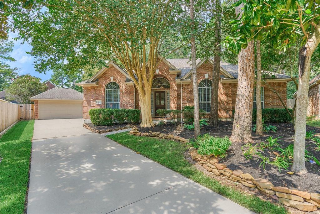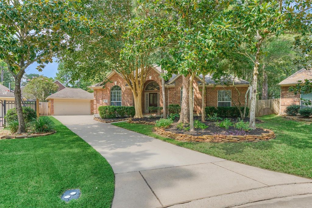 Welcome to this beautifully updated single-story home in The Woodlands, quietly tucked on a cul-de-sac in Alden Bridge and zoned to top-ranked schools, including The Woodlands High School. Inside, you’ll find tile wood-look floors, fresh paint, soaring ceilings, and an easy-flowing layout. Flexible spaces include formal living and dining, plus a spacious family room that opens to the breakfast area and updated kitchen with quartz counters, Carrara marble backsplash, and a large island. The serene primary suite features a fully renovated spa-like bath with marble finishes, soothing colors, and a deep soaking tub. Outdoors, enjoy a covered patio, extended decking, and mature shade trees. Full HVAC system replaced June ’23. With its prime location, updates, and versatile living spaces, this home is move-in ready and sure to impress.