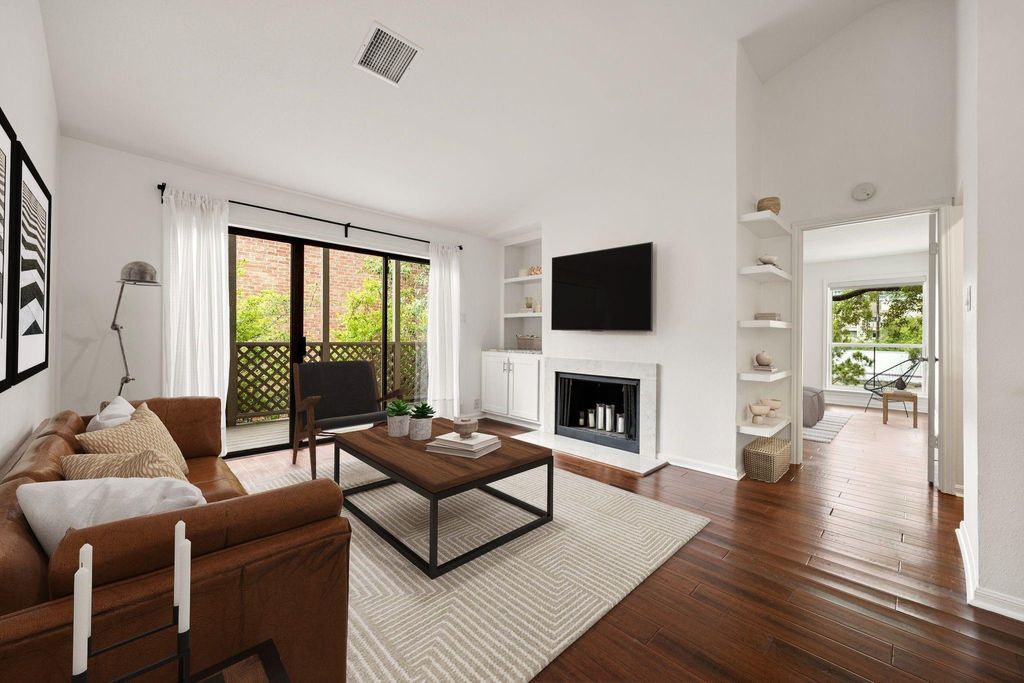 This second-floor Park St. John condo offers a great location with modern updates throughout. This light-filled 2-bedroom, 2-bath layout features an open floor plan connecting the living, kitchen, and dining areas. The living room includes a fireplace with built-ins and a vaulted ceiling. Engineered wood floors run throughout the main areas and bedrooms. The kitchen and bathrooms have been updated with shaker cabinets and granite countertops, along with a stainless steel appliance package. The primary suite offers an ensuite bath and a large walk-in closet, while the secondary bedroom is generously sized with its own walk-in closet. Enjoy a private balcony with treetop views. Two assigned parking spots are included, one covered and one uncovered. Zoned to top schools, Poe Elementary and Lanier Middle, with easy access to nearby restaurants and shops.