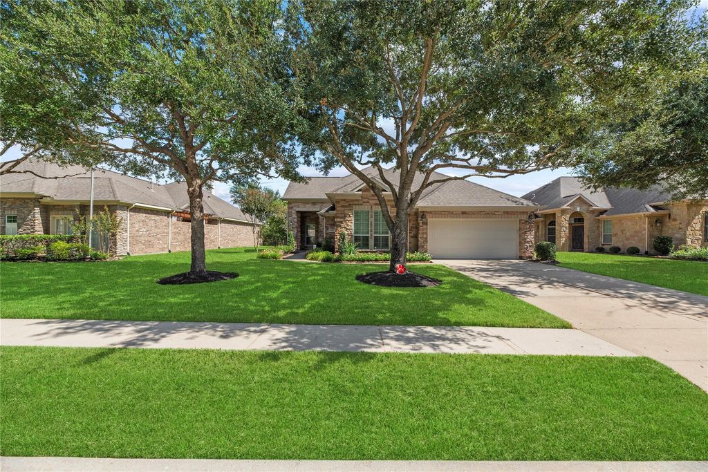 Nestled in the 55+ active adult Heritage section of master-planned Towne Lake, this stunning home offers 3 bedrooms, 2.5 bathrooms, and a 2-car garage. The inviting layout includes a dedicated home office with French doors and built-in bookshelf, plus a formal dining room perfect for gatherings. The kitchen boasts granite countertops, tile backsplash, under-cabinet lighting, stainless steel appliances, double ovens, and a gas cooktop—ideal for any chef. The family room features two walls of windows and a cast-stone fireplace, filling the space with natural light. The primary suite offers a spa-like retreat with dual vanities, a jetted tub, oversized shower with bench, and a spacious walk-in closet. Enjoy outdoor living with a private patio and a covered back patio overlooking serene water views and no back neighbors. Community amenities include a pool, pickleball and bocce ball courts, a game room, recreation center, and library—designed for an active, social lifestyle.