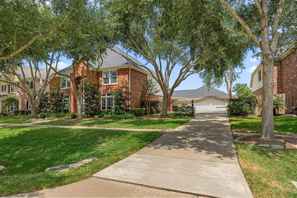 Looking for a fabulous home in Sienna with 4 BRs, 3 1/2 baths & a 3 CAR OVERSIZED GARAGE- 32' X 32' (10 foot extension!)? Add an AMAZING backyard with a POOL, COVERED OUTDOOR KITCHEN & SITTING AREA & a remote driveway gate too! There's even motorized shades to drop down when you need them. THIS IS IT! Inside, you'll find a very open floor plan. Custom plantation shutters on your windows & wood look tile on the first floor. The kitchen boasts an island, wine fridge & plenty of counter space. The primary retreat looks out to the secluded back yard. Upstairs features 3-4 bedrooms that are oversized with WALK IN CLOSETS & updated carpet with luxury carpet pad too. Zoned to great schools & easy access in and out of Sienna! NO BACK NEIGHBORS & NO CAPITALIZATION FEE on this home either! Updates- Roof 8/21, water heaters 6/24 & 2/20, AC units 11/24 & 6/23, pool resurfaced 3/23. CHECK OUT THE UPGRADES LIST too! Come see this beauty today!