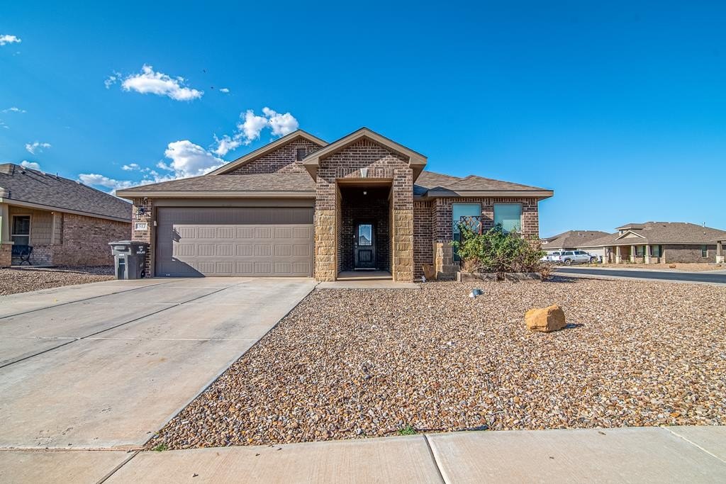 Bright 3 bed, 2 bath home on a corner lot with open layout and high ceilings. Natural light fills the spacious living area with a cozy gas fireplace. Kitchen features granite countertops and a breakfast bar. Wood-look tile throughout main areas. Private primary suite offers dual sinks, garden tub, separate shower, and large closet. Enjoy the backyard with covered patio-perfect for relaxing or entertaining!