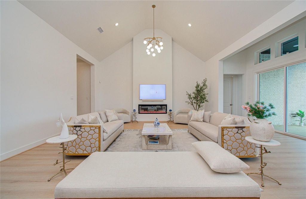 Experience elevated elegance in this exceptional 4-bedroom, 3-bath residence in Sienna. A grand living room with soaring ceilings and a refined mock fireplace creates a striking first impression, while a private media room and sunlit sunroom offer comfort and versatility. The gourmet kitchen is a true centerpiece, adorned with Taj Mahal quartzite waterfall countertops, an expansive island, double ovens, bespoke cabinetry, and a sophisticated butler’s pantry. The primary suite serves as a serene retreat, featuring a spa-inspired Jack-and-Jill bath with a soaking tub, a glass-enclosed shower, dual vanities, and a generous walk-in closet. A thoughtfully designed laundry room with granite counters adds convenience. Outdoors, enjoy impeccable curb appeal, a 3-car garage, and a private fenced backyard with a covered patio and no rear neighbors. Situated in Sienna with premier amenities, top-rated Fort Bend ISD schools, and seamless access to shopping and dining.