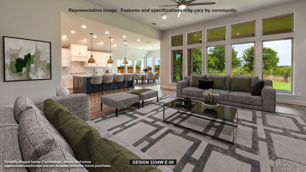 Welcoming entry framed by home office with French doors. Spacious game room with French door entry. Spacious family room features a wall of windows and a wood mantel fireplace. Island kitchen with built-in seating space, double wall oven, a 5-burner gas cooktop, and a walk-in pantry flows into the dining area. Primary bedroom with a wall of windows. Primary bath features French doors, dual vanities, two walk-in closets, two linen closets, a freestanding tub and a separate glass enclosed shower. Secondary bedrooms joined by a Hollywood bathroom. Private guest suite with a full bathroom and walk-in closet near front of home. Extended covered backyard patio. Utility room and mud room just off the three-car garage.