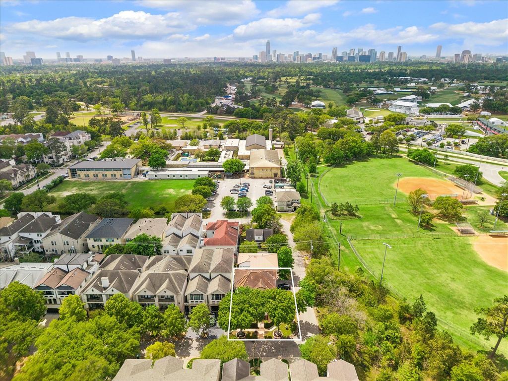 A true showplace at the edge of Memorial Park, this stunning three-story stucco home blends elegance, comfort, and coveted park-side living. Positioned on a corner lot in Camp Logan, it offers sweeping park views and a serene backdrop. The expansive wraparound front patio invites year-round outdoor living and entertaining. Inside, rich hardwood floors, arched doorways, and curated architectural details add warmth and character throughout. The flexible layout includes two bedrooms on the first floor, ideal for guests or multi-use living. A private elevator provides seamless access to all levels. The second-floor features inviting living spaces and balconies that capture the surrounding views, along with a chef’s kitchen complete with a unique refrigerated pantry. The entire third floor is dedicated to a private primary suite retreat. With a two-car garage and a prime location just steps from Memorial Park, this home offers luxury, convenience, and charm.