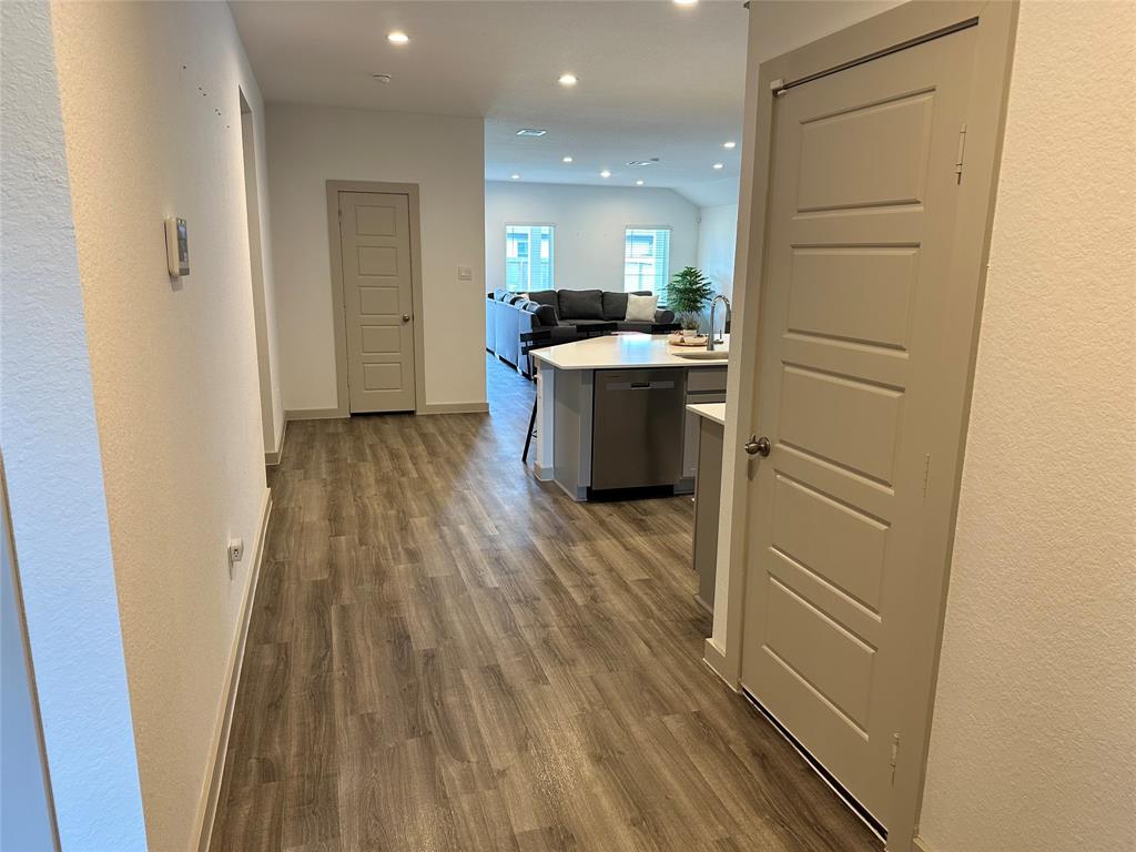 Welcome to Caldwell Ranch! This spacious and light filled 4 bed 2 bath home features lots of kitchen cabinets, a huge island, quartz countertops, farmhouse sink, a big pantry, and an open floor plan. With easy to maintain wood look vinyl plank flooring in common areas and baths, carpet in the bedrooms, this home boasts contemporary finishes throughout. FRIDGE, WASHER and DRYER included. Enjoy dimmer lights in the living and kitchen spaces, sound deadening tiles in the laundry room, and a garage with special paint and lights for vehicle detailing. Situated on one of the largest lots, this home also includes a covered patio off the living room and a builder technology package. For additional fee, enjoy access to the neighborhood's fantastic water features, just a few moments walk from the property.