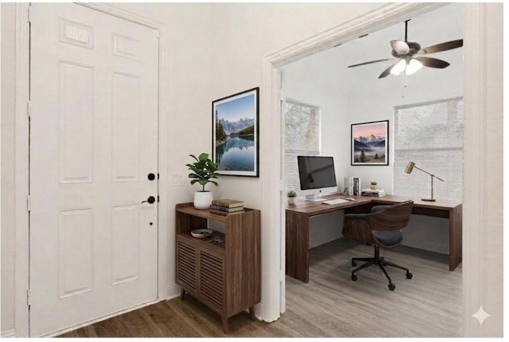 Built in 2020, this lovely 2,041 square foot home in the highly sought after Godley ISD features 4 spacious bedrooms with walk in closets, 2 stylish bathrooms, and a luxurious master suite with a soaking tub, separate shower, and dual sinks. Step inside to a bright, open great room with a stunning stone fireplace, a private office, and a chef's kitchen boasting granite countertops, a large granite island, gas range, and brand new dishwasher. Fresh new paint and floors throughout, ceiling fans everywhere, a covered patio, and a spacious backyard completes this move in ready gem. Perfect for buyers who want modern comfort in a top rated school district!