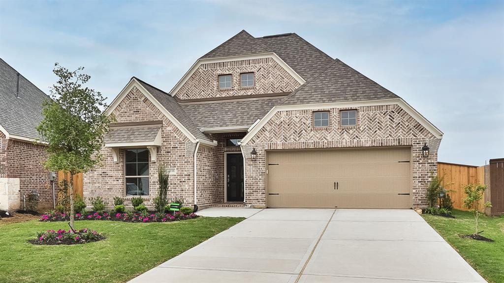 PERRY HOMES NEW CONSTRUCTION-Home office with French doors off entry with 12-foot ceiling. Formal dining room flows into open family room with wall of windows. Kitchen features walk-in pantry and generous island with built-in seating space. Adjoining morning area features two walls of windows. Private primary suite with wall of windows. Dual vanities, corner garden tub, separate glass-enclosed shower and walk-in closet in primary bath. A guest suite with private bath adds to this four-bedroom home. Extended covered backyard patio. Mud room off two-car garage.