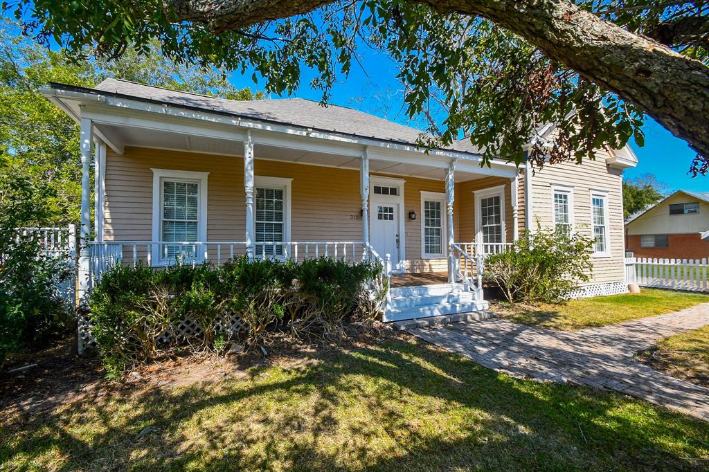 Over 100+ year old charmer! Located in small town Wallis (11 miles from Sealy) Built in 1898 with front porch, large windows, natural light, and updates throughout. Remodeled kitchen, wood floors, lovely mouldings and details throughout the home, built-ins in den and dining room. Huge lot with mature trees. Above ground pool, metal storage building. updates include new roof, remodel bathroom, interior and exterior paint. There is so much character here!