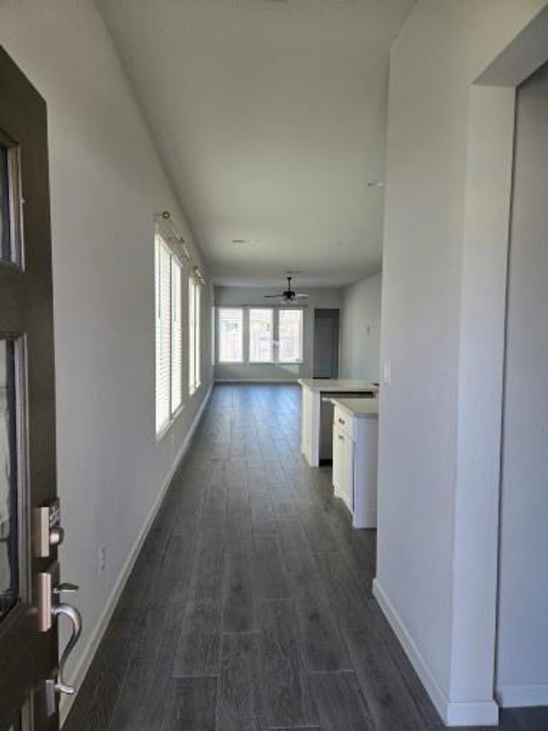 This MOVE-IN READY Perry Home features an open-concept layout with entry flowing into the kitchen, dining, and family room. Abundant natural light and 10-foot ceilings throughout. Kitchen features a large island with seating and walk-in pantry. Family room showcases a wall of windows. The private primary suite offers a serene retreat with a 10-foot ceiling and elegant double-door entry into the spa-inspired bath, complete with dual vanities, a separate glass-enclosed shower, and an oversized walk-in closet. Secondary bedrooms include walk-in closets. Enjoy outdoor living on the covered backyard patio and appreciate the convenience of a utility room with direct access to the two-car garage.