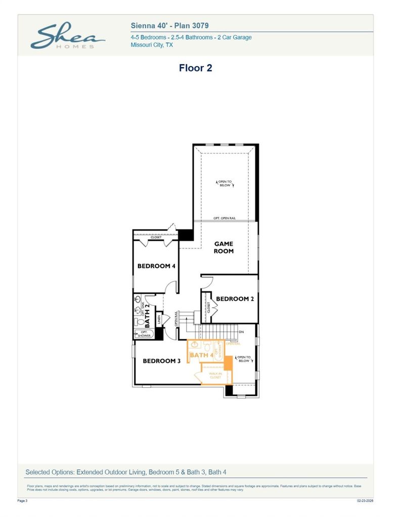 The largest plan in the Shea Homes 40' series makes extremely efficient use of space, with two-story ceilings and a view of the loft from the wide-open great room. This high-value home accommodates growing families with ease -- without sacrificing any comforts for the adults. Features include an upgraded primary bathroom layout; a bump-out storage area in the garage; and upgraded kitchen appliances, including a 36" gas cooktop. All new Shea homes are EnergyStar Certified and come with smart home technology, stainless steel gas appliances, and a one-year warranty. Take advantage of Sienna's wide variety of amenities and join in on the sense of community in this vibrant, sprawling master plan. The Bees Crossing section is located near the front of the development, making for easy access to Fort Bend County Toll Road and Highway 6. Ask about our amazing promotions!