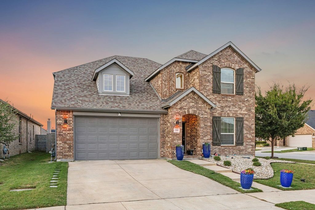 Discover luxury living at its finest in Argyles' most desirable neighborhood, Harvest! With updates valued over $200k this meticulously maintained 4-bedroom, 3-bath Highland Home home offers the perfect blend of elegance, comfort, and functionality. From the moment you arrive, the professionally landscaped yard and impressive curb appeal set the tone for what’s inside. Step into a light-filled foyer that opens to a formal dining room and a spacious living room with soaring ceilings. Throughout the home, you’ll find designer touches and finishes. The chef’s kitchen is a true showstopper, featuring sleek cabinetry with hardware, granite countertops, center island, stainless steel appliances, a gas cooktop range and modern lighting. Retreat to the luxurious primary suite with a spa-inspired ensuite bath with double vanities, a large walk in shower and a generous walk-in closet. Upstairs, enjoy a large game room and an additional adjacent living area and two bedrooms, plus full bathroom. Step outside to your own private resort-style paradise. A custom-built covered patio overlooks a stunning salt water heated pool with a mesmerizing waterfall feature, and a Texas-sized roofed patio with outdoor counter, storage cabinets and built in gas grill. Surrounded by low maintenance landscaping, LED color changing patio lighting and enclosed by a wood fence, this backyard oasis offers the ultimate in privacy and tranquility—perfect for hosting lively gatherings or enjoying peaceful evenings. Additional features include a storage shed and numerous upgrades: 2022 Tankless water heater, 2021 SALT WATER Pool, 2020 Deck masters double covered Patio Roof, 2022 RainSoft whole house water softner system, 2021 Outdoor kitchen area with gas grill. Zoned to Argyle ISD this exceptional home truly has it all! Community amenities include a scenic lake with kayaking and fishing, parks, neighborhood pools, coffee shops and more!