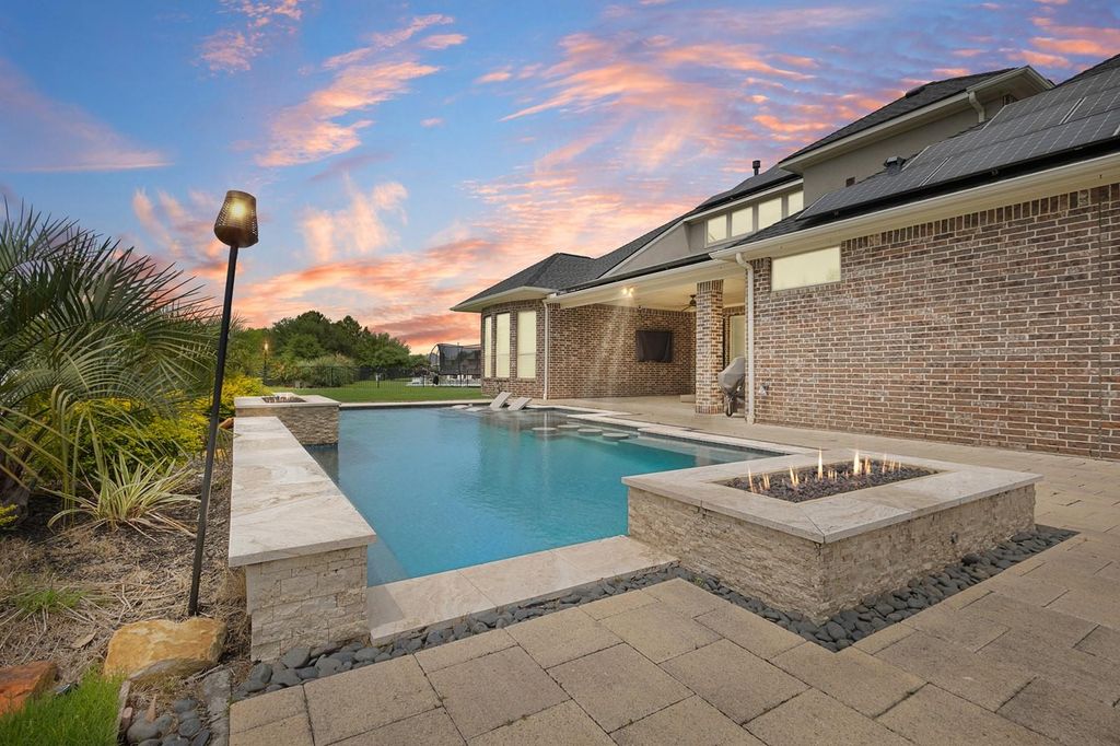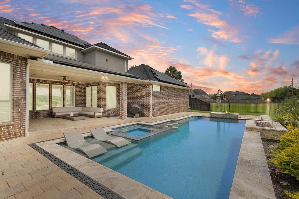 Discover this extraordinary luxury Estate in prestigious Creek Cove of Cross Creek Ranch, set on a rare 80 foot oversized lot spanning 14,370 sq ft at the end of quiet cul-de-sac. This architectural masterpiece offers exceptional privacy, with no neighbors, in front, behind or on the right-creating a truly exclusive setting. Thoughtfully designed with 5 spacious bedrooms, 5.5 elegant bathrooms, and expansive open concept high ceilings and refined finishes. A recent Class 4 impact- resistant roof and fully owned solar system with batteries providing energy efficiency and backup power. Don't miss the resort-style back yard with stunning pool and spa surrounded by lush landscaping -ideal for entertaining or private enjoying. A rare opportunity to own one of Cross Creek Ranch's most distinguished homes in KATY ISD with premier amenities and scenic trails.
