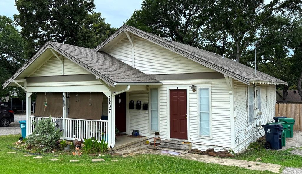 2207 N Elm St is an attractive 1930's stacked triplex with two ground-floor units and one rear, overlapping, upper-level unit on an extra large lot in the heart of Denton, just blocks from Texas Woman’s University and minutes to Downtown Denton Square. Each of the three 1BR 1BA units offers an average of 655 SF (per owner provided rent roll), with plenty of upside for a buyer looking to renovate and boost income potential. One tenant currently pays $35 month for utility reimbursement. New owner could have the other two tenants reimburse as well once leases roll over.