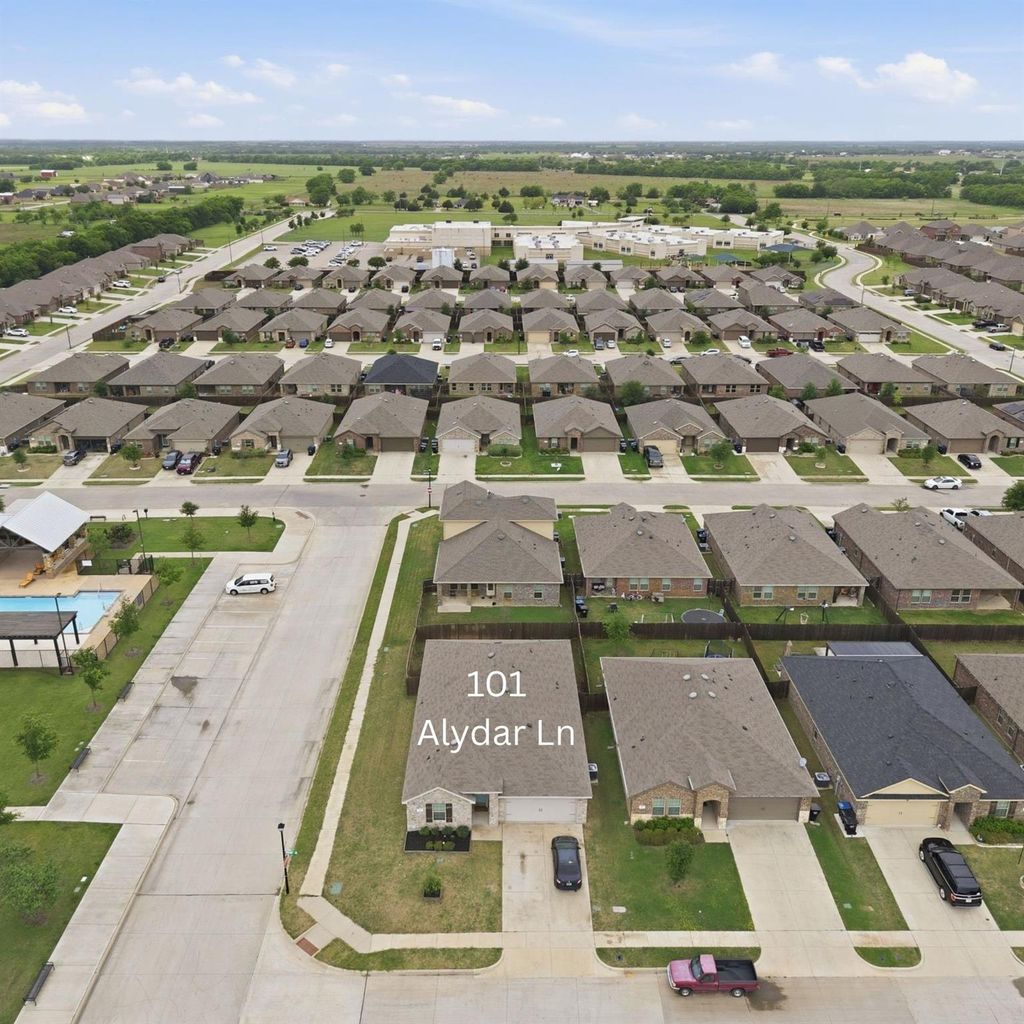 101 Alydar Ln is listed for sale at $ 269,990. The Residential - Single Family property has 4 bedrooms, 3 Full Bathrooms, 2097 square feet and was built in 2020. The lot size is 0.15 Acres. ##BR##This thoughtfully designed 4-bedroom, 3 full bathroom home w-a dedicated study and 2-car garage offers a versatile layout ideal for a variety of lifestyles, whether you’re working from home, hosting guests, or simply enjoying the space you deserve. From the moment you arrive, you’ll appreciate the inviting curb appeal, front yard landscaping and a covered entry. Positioned on a corner lot, this home offers added privacy and a sense of openness. Step inside and you’re immediately welcomed by fresh, updated paint throughout the home, creating a clean and move-in ready environment. The entryway features durable and stylish luxury vinyl plank flooring that seamlessly guides you into the heart of the home, the expansive great room. This open-concept space combines the kitchen, family room, and dining area, making it perfect for both everyday living and entertaining. The kitchen is designed w-connection in mind, offering white cabinetry, quartz counter tops, island all to stay engaged while preparing meals. Just off the entry, you’ll find a private bedroom paired w-a full bathroom, an ideal setup for guests. Two additional guest bedrooms are located just off the great room, thoughtfully split by a full bathroom. Utility room has built-in cabinets and is near the primary suite. Tucked away at the back of the home, the primary bedroom is designed w-privacy in mind, it is separated from the other bedrooms and features windows that overlook the backyard. A ceiling fan adds comfort, while the ensuite bathroom includes a shower and bathtub combination, a large vanity and shelving. Step outside to enjoy the wood-fenced backyard and covered patio that creates an inviting outdoor living space. A stand-out feature is location directly across from the community pool. The home truly checks all the boxes—corner lot, flexible floor plan, updated interior, outdoor living space. Whether you’re a growing household, multi-generational living situation, or simply looking for a home that adapts to your life