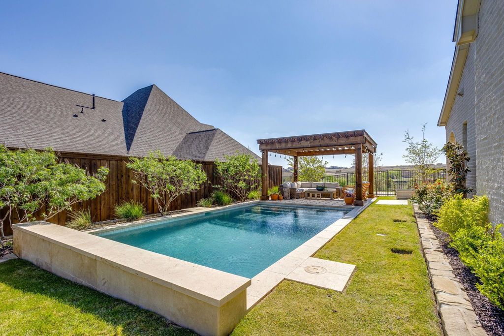 This is a rare opportunity to own a custom build by High Street Homes, designed by Phillips House, with elevated finishes throughout. Set on a quiet street and premium lot, the home offers a sense of space and calm from the moment you arrive. Inside, the main living area is anchored by vaulted ceilings, custom windows, and an easy flow of natural light. The kitchen is thoughtfully laid out with custom ceiling beams, creating a space that feels both functional and well considered. Each room carries a consistent attention to detail without feeling overdone. The primary suite is located on the first floor, with double doors that open to a covered porch and easy access to the custom 2024 pool and pergola—creating a natural connection between indoor and outdoor living. Upstairs, two bedrooms are paired with a second living or game room and full bath, offering a layout that feels intuitive and usable. All of this is set within the amenities of Walsh, with access to trails, community spaces, and highly regarded Aledo Independent School District, while still offering a convenient drive into Fort Worth.