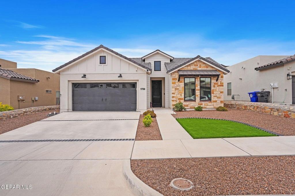 ASSUMABLE VA LOAN! This gorgeous Palo Verde farmhouse resale is calling your name! Its 4 bed, 2 bath open concept kitchen/dining/living with zoned primary suite is the perfect set up for entertaining, as well as working from home or homeschooling. The kitchen has plenty of quartz countertops and space for cooking and storage. The primary suite boasts two vanities (also with quartz), an oversized soaking tub, shower, and large walk-in closet. Enjoy copious amounts of natural light throughout the house, filtered by solar tint on most of the windows. Enjoy the privacy of the turfed backyard with gazebo and lighting, creating the perfect atmosphere for relaxation. The garage has epoxy flooring and a tankless water heater. Welcome home!