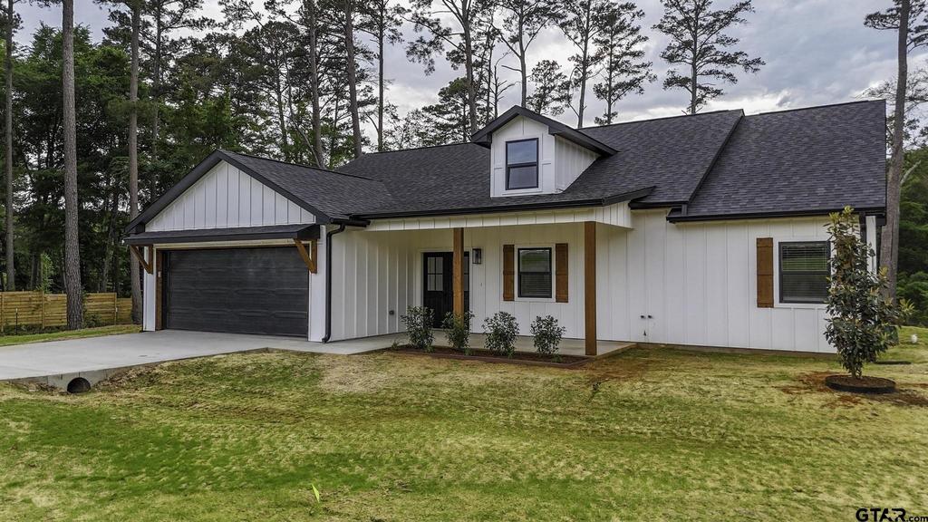 Discover refined country living in this stunning new construction modern farmhouse situated on a spacious .86-acre lot in the desirable Whispering Pines subdivision. Designed with both style and functionality in mind, this 4-bedroom, 3-bath home features an open-concept layout ideal for entertaining, highlighted by beautiful exposed beams that bring warmth and character to the living room. The thoughtfully designed split-bedroom floorplan offers privacy and comfort, while large windows invite in natural light and showcase the serene setting. Step outside to enjoy the peaceful backdrop of a picturesque creek running along the rear of the property, creating a truly tranquil retreat. Conveniently located with easy access to both Mineola and Lindale, you'll enjoy the perfect balance of quiet country living and nearby shopping, dining, and amenities.