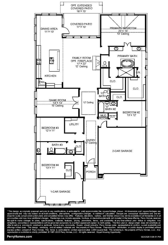 Entry and extended entry with 12-foot ceiling. Large game room with French door entry. Island kitchen with a walk-in pantry flows into the dining area. Spacious family room with a wall of windows. Secluded primary suite with a wall of windows. Dual vanities, center garden tub, separate glass enclosed shower, a linen closet and two large walk-in closets in the primary bath. Guest suite and secondary bedrooms joined by a Hollywood bathroom complete this spacious design. Covered backyard patio. Three-car split garage.