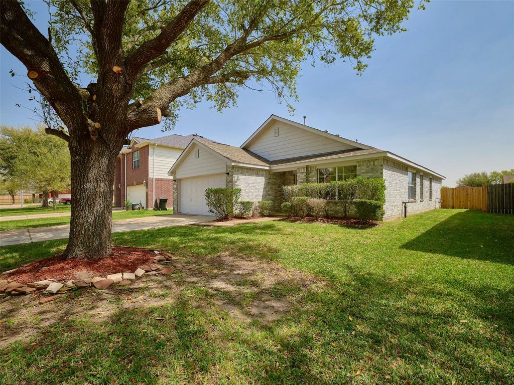 Great Neighborhood, LOW TAXES, LOW HOA, and awesome location. This nice home is ready for its new owners. Complete interior paint March 2025, and replaced kitchen appliances March 2025. This home offers a spacious layout with two living areas, eat in kitchen with stainless appliances, and lots of natural light. There is a big open patio out the kitchen door, that makes outside entertaining a breeze. The private back yard is fenced and backs up to a dry retention pond area that offers no immediate back neighbors. The home has a nice size ensuite bedroom and spacious bath. There are two more bedrooms with a full bath, along with an indoor utitlity room. The two car attached garage offers a double wide drive, and auto garage door opener. The home sits on a nice lot with mature front tree offering shade and great curb appeal. Come see this desired neighborhood where shopping is abundant and close. Hurry out and see what there is to offer in this lower tax area community. Come see today!