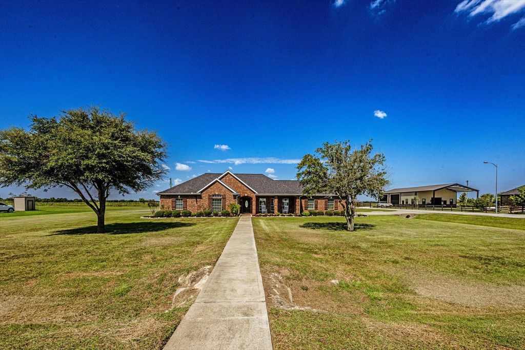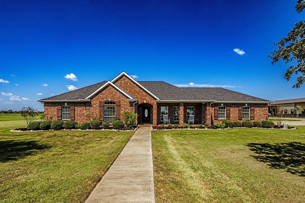This Beautiful custom home sits on a corner acreage lot. As you step inside from the front brick covered porch there is a large family room perfect for gatherings and is open to the kitchen and dining room. The kitchen has granite countertops, plenty of cabinet space and a freestanding island. The dining room is right off of the kitchen and looks out into the front porch. The primary bedroom is big and offers wood floors, a private ensuite bath with granite countertops, double sinks and a separate shower and tub. Plus it has his/hers walk in closets. The room located next to the primary is the perfect flex space and can utilized for a home office, playroom you name it. On the other side of the home you will find 2 large secondary bedrooms with large spacious closets. The secondary bathroom offers double sinks and separate tub/toilet area. Interior paint and carpet 9/25 & HVAC replaced 8/24. The 2 car garage is oversized and has plenty of additional storage. Come see this home today!