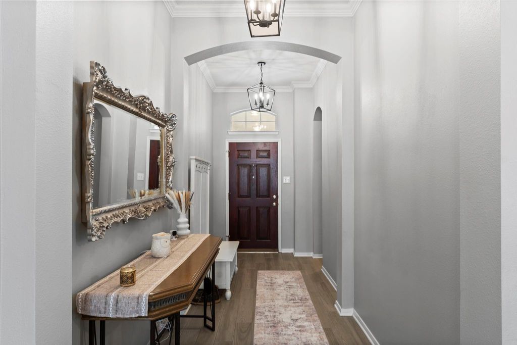 Welcome to this David Weekley home in the Villages of Northpointe, featuring 3 bedrooms and 2 full baths with a shaded front yard and inviting porch. Inside, bright foyer with soaring ceilings, crown molding, updated light fixtures, and tile flooring throughout the main living areas sets the tone. The open, split floor plan offers light-filled living room with wall of windows flowing seamlessly into the kitchen with breakfast bar, stainless steel appliances and breakfast nook, plus spacious formal dining room. Master suite, complete with new carpet, provides luxurious retreat with double vanities, soaking tub, separate shower and walk-in closet. Secondary bedrooms share full bath, while outside you’ll find covered patio, 2-car garage and yard ideal for entertaining. Recent updates include water heater, paint touch-ups, grout cleaning, and previous improvements, AC and roof (approx. 2016). Conveniently located in a top-rated school district with nearby shopping and dining.