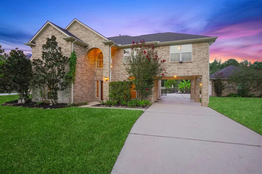 **Motivated Seller, bring offers!** Welcome home, in the highly sought after, golf course, gated neighborhood of Grand Lake Estates! NEW ROOF, 50 year shingles, July 2021! Zoned to the highly sought after MISD, Lake Creek High School! This 1 acre, fully fenced oasis, 6-7 different species of butterflies abound, complete with garden, 30+ varieties of bananas and tropical plants, pecan tree, greenhouse, shed, and a fenced pool! Vaulted ceilings greet you upon entry, huge windows, open floor plan make the home airy and bright! Formal dining room is right off of the kitchen, in the perfect location. Master bedroom has high ceilings, sitting area, and door to lead you to the back yard. Large soaking tub, separate shower, and walk-in closet in the en-suite bathroom. Private study and half bathroom round out the downstairs. Upstairs is a large game room, 3 bedrooms, and two full bathrooms. New flooring throughout, tile, carpet, and luxury vinyl plank.
