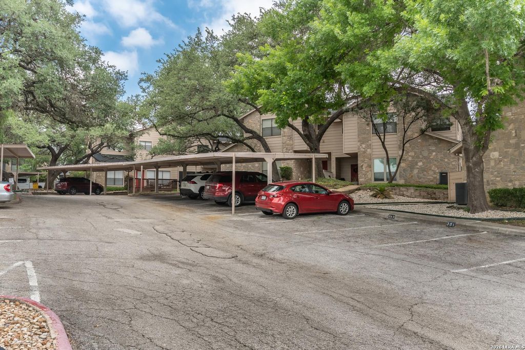 This unit is priced so you can affordably come in and put your touches on it. Nice, open living, dining and kitchen areas with laminate and tile flooring. Both bedrooms are up with a nice large bathroom/dressing area. The spacious kitchen will allow for breakfast area if desired. The grounds are so pretty with all of the oak trees. Location is fabulous with easy access to 281, Wurzbach Pkwy, Loops 410 and 1604. The airport is only about 10 minutes away too. Lots of restaurants close by too. A great way to get in this desirable area of the city.
