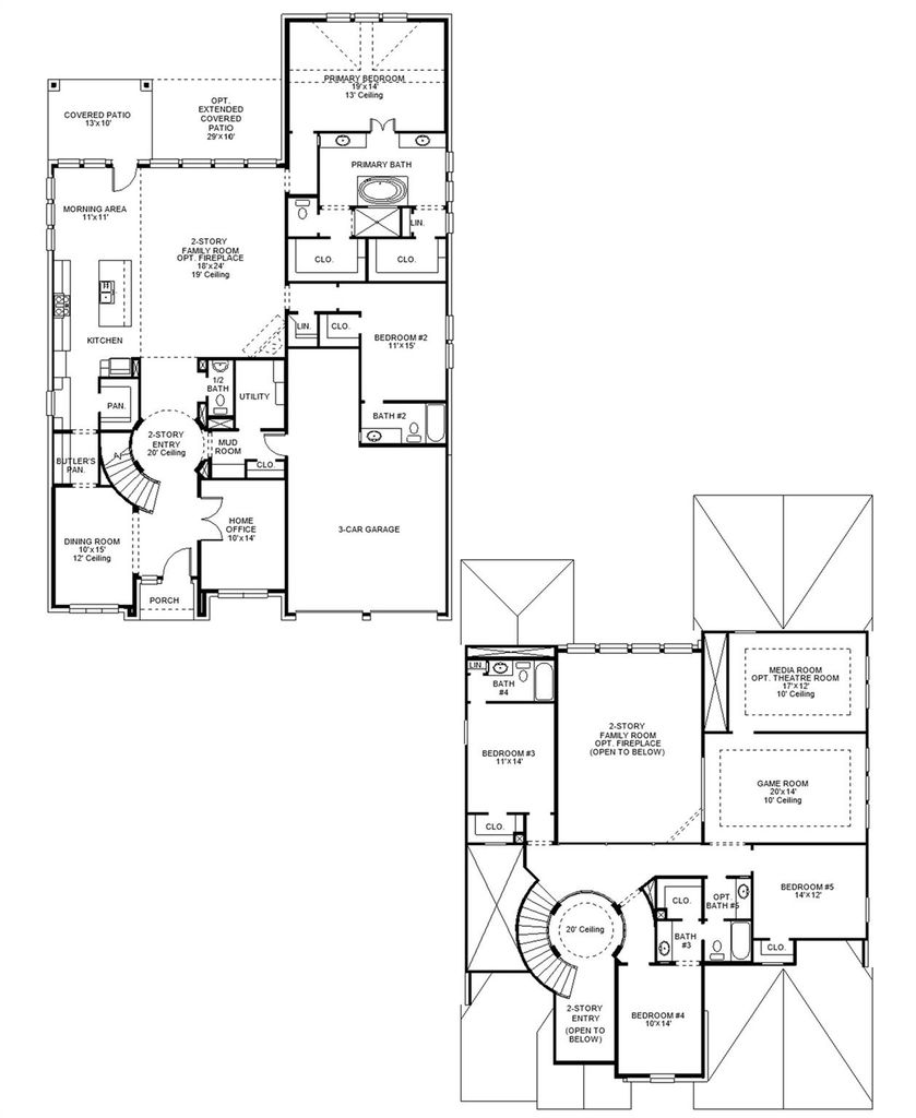 Elegant two-story design featuring a 20-foot rotunda ceiling. Home office with French doors and formal dining room set at entry. Spacious family room with a 19-foot ceiling and a wall of windows. Kitchen features a large island with built-in seating space, a 5-burner gas cooktop, a walk-in pantry and a Butler's pantry. Private primary suite boasts a curved wall of windows. Primary bath includes a freestanding tub, separate glass-enclosed shower, dual vanities and two large walk-in closets. Downstairs guest suite with a full bath and walk-in closet. Upstairs game room with an adjoining media room. Secondary bedrooms, a linen closet and a Hollywood bath complete the second floor. Extended covered backyard patio. Mud room just off the three-car garage.