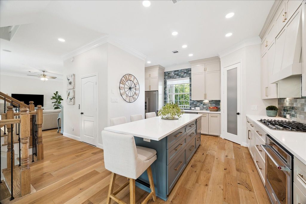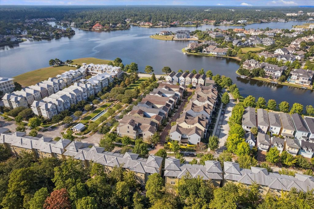 WORKING ELEVATOR! Experience East Shore living in this immaculate corner unit three-story townhome just a stroll from Lake Woodlands! New wide plank French Oak floors flow throughout the residence while fresh paint has created a serene and stylish color palette. The entire kitchen has been completely and thoughtfully renovated by these homeowners. The floorplan is open with a wonderful flow. The entire living area is perched on the second level of this corner unit with abundant windows so that the living spaces are drenched in natural light. All three bedrooms have dedicated en-suite baths. The oversized primary bedroom suite is located on the third level and boasts two separate walk-in closets. The home's ventilated elevator makes townhome living easy and convenient. Don't miss the freshly painted garage with epoxy flooring and natural light. Steps from the lake! Walk to dinner! Enjoy all that East Shore living has to offer: clubhouse, fitness room, pool, parks!
