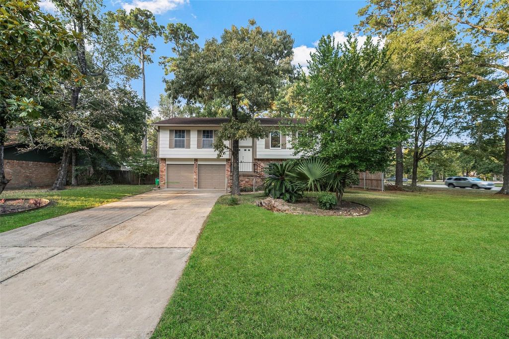 Recently Remodeled 4-bedroom, 2-bath home on a corner lot in the desirable community of Kingwood! This spacious 2-story layout offers a split-level design featuring a secluded primary suite on the lower floor, along with a separate living area & cozy brick fireplace. The upper level features a large family room adjacent to an upgraded Kitchen/Breakfast area, along with 3 spacious secondary Bedrooms and Full Bath. Step outside on the balcony deck, which covers an additional patio area below near the primary bedroom. Enjoy a spacious yard ideal for outdoor fun and games. Conveniently located near parks, shopping, dining, and major thoroughfares, this home blends comfort, space, and convenience in one great package. Excellent Kingwood schools! Close proximity to IAH! Call for more info!