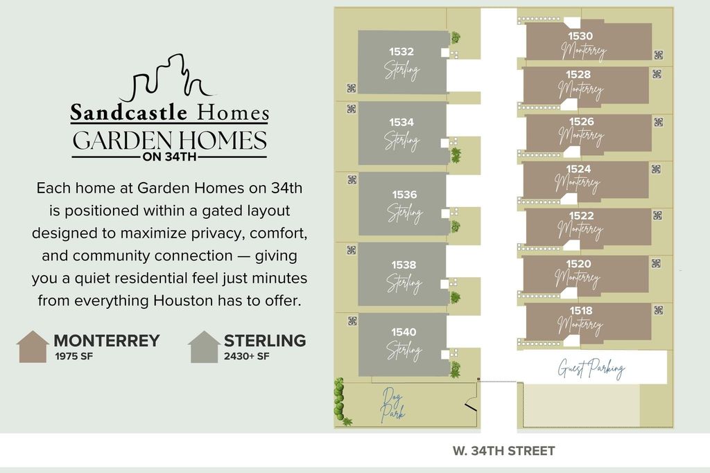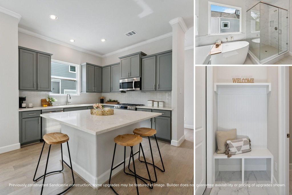 Big pantry. Bigger personality. The Monterrey at Garden Homes on 34th is where charm meets function — and where everyday life just feels a little more elevated. Tucked inside a gated community in the heart of the Garden Oaks area, this is one of seven being built, and with construction still underway, options to personalize may still exist. The kitchen is a genuine showstopper: walls of cabinetry, a generous walk-in pantry, and quartz countertops that make cooking feel like an event. A built-in mudroom and tucked-away powder bath add the kind of thoughtful touches you notice on day one and appreciate for years. Upstairs, an airy loft leads to three spacious bedrooms, including a dreamy primary suite with vaulted ceilings, a spa-style bath, and a closet that feels endless. A two-car garage, fenced yard, on-site dog park, and guest parking mean the lifestyle matches the home. Sandcastle Homes has been getting these details right for 30 years — and the Monterrey is no exception.
