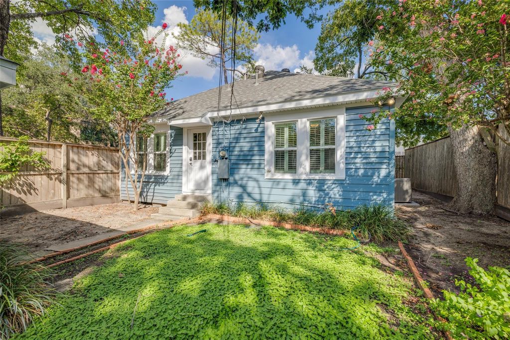 Discover this captivating bungalow, perfectly nestled in the heart of West University! This residence seamlessly combines urban living with historic charm. Enjoy the privilege of living within walking distance to Rice Village. This property features 2 bedrooms, 1.5 bathrooms & 1,253 square feet of living space. Unwind on the front porch or in the back patio. Notable upgrades include, new triple pane windows, modernized electrical, plumbing, HVAC system & a new roof. The bathroom boasts sleek white tile floors & a frameless glass shower door. The original hardwood floors serve as a testament to the home's rich history. The chef's kitchen is an absolute gem, equipped w/ granite countertops, SS appliances, custom cabinetry, plantation shutters & a cozy breakfast nook. Primary bedroom is spacious with built-in shelving. The second bedroom can be used as a guest suite or home office. The private driveway leads to a large two-car garage. Zoned to top-rated schools in West University.