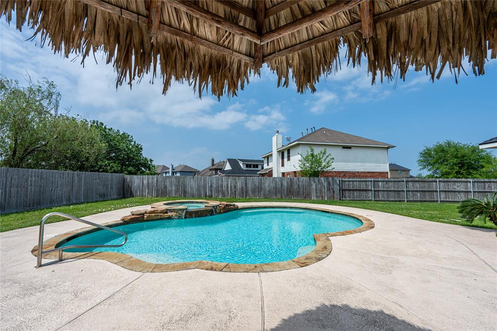 Welcome to this beautiful home in the desirable Pelican Harbour community! Boasting 18-foot ceilings, a formal dining area, and a gourmet kitchen outfitted with elegant granite countertops, stainless steel appliances, and abundant cabinetry, this home is an entertainer's dream. The spacious primary suite features serene pool views, a luxurious spa-like bath, and dual walk-in closets. Upstairs, you'll find a generously-sized game room, two additional bedrooms, and a beautifully refreshed bathroom. Recent upgrades include fresh interior paint, new blinds, a brand-new roof. The A/C unit is a mere 4 years old and operates at an efficient 16 SEER rating. Outside is your own private oasis, featuring a sparkling pool, rejuvenating spa, a charming palapa, LED pool lighting, a handy shed, solar screens and full privacy fencing. Situated outside of the flood zone, this home offers both tranquility and peace of mind.