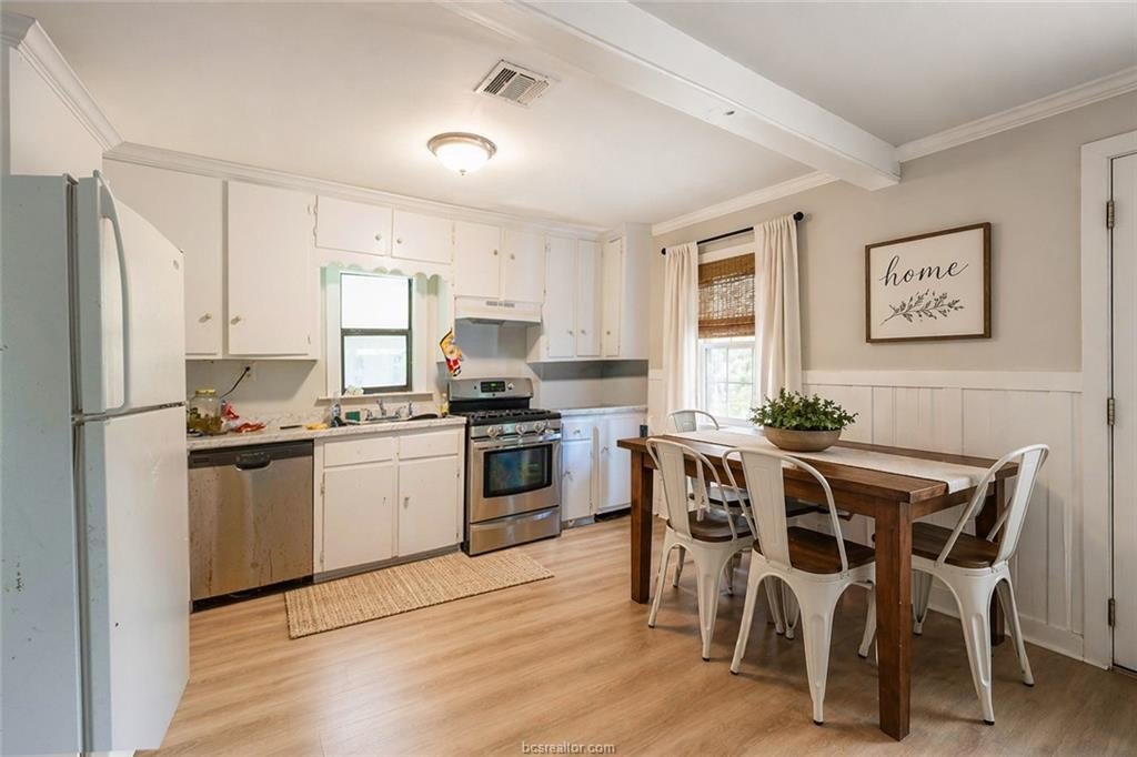One-of-a-kind mini ranchette situated on over 3/4 of an acre within the city limits, offering rare space, privacy, and convenience just minutes from vibrant downtown Bryan. This 3-bedroom, 3-bath home features updated bathrooms with designer tile, along with fresh flooring, fresh paint, and updated countertops throughout. The expansive lot provides endless possibilities while still being close to shopping, dining, and everyday amenities. Enjoy outdoor living on the private back deck surrounded by mature trees, plus a carport with an attached workshop complete with power and a work sink, an additional 220V outlet for heavier equipment, a dedicated laundry room with connections, and ample parking. Currently leased through May at $1,395 per month, this property offers immediate income potential. Owner offering opportunity with flexibility which can lead to YOU owning a unique mini ranchette that combines privacy, space, and an unbeatable in-town location.