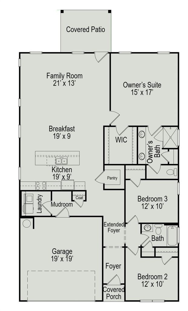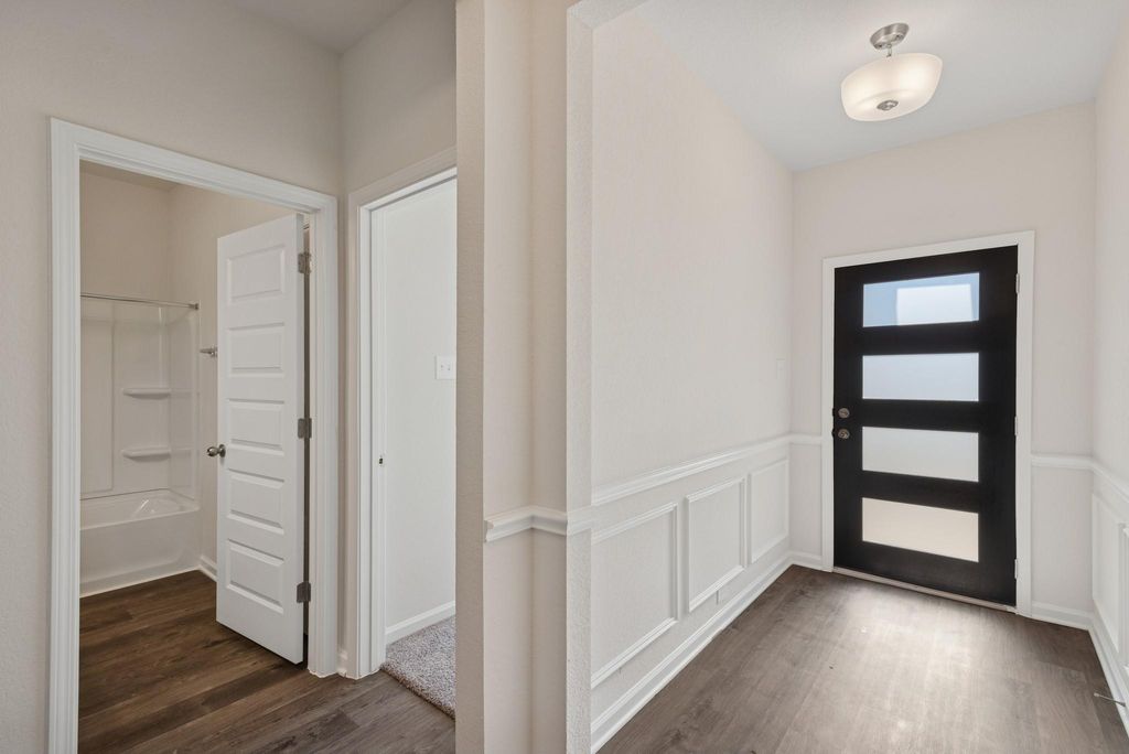 The Crawford by Smith Douglas Homes in Trails at Woodhaven Lakes is a spacious one-story home offering 3 bedrooms and 2 baths, with a convenient mudroom off the foyer. The kitchen features 42” upper cabinets, granite countertops, an oversized island, and luxury vinyl plank flooring throughout the main living areas. The primary suite includes a tray ceiling, dual vanities, and a large walk-in shower. Two secondary bedrooms and a full bath are located at the front of the home off the foyer. Additional highlights include a covered rear patio and more! AVAILABLE APRIL/MAY!