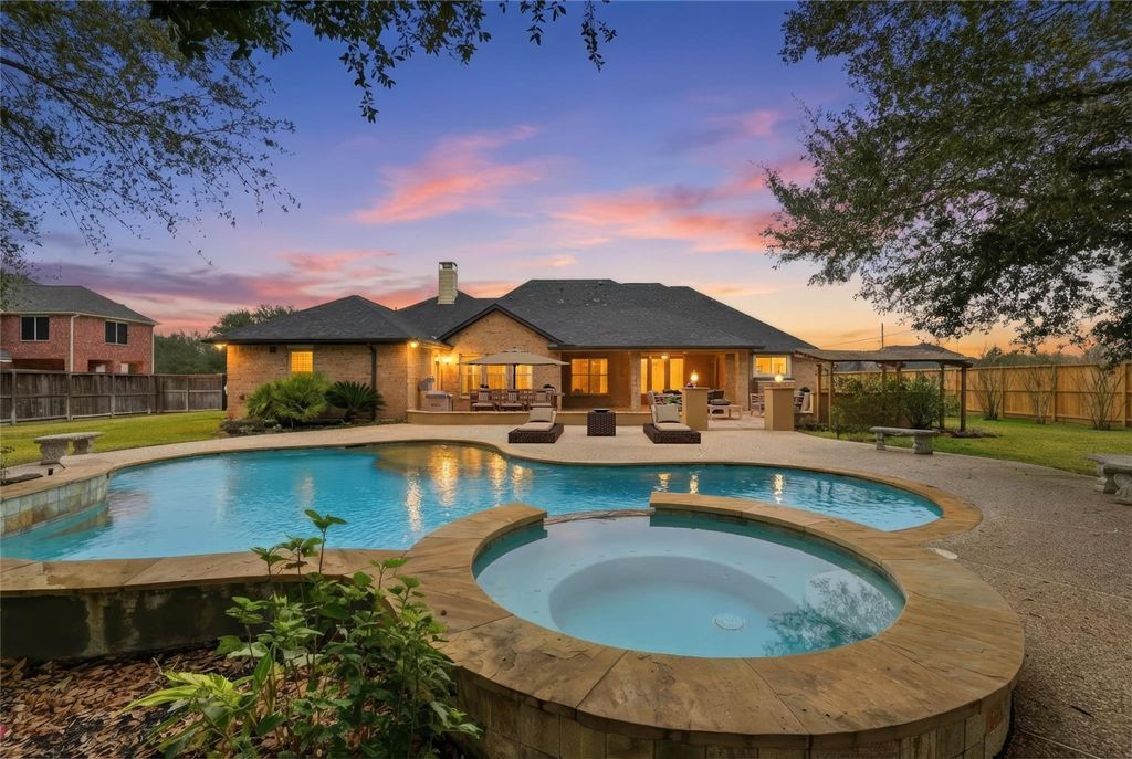 Fully updated 0.68 Acre Estate/ New Roof, Flooring & Resort-Style Backyard. This beautifully maintained single-family home situated on a half-acre lot with a 3 car garage and is sure to wow! Resort style backyard features expansive heated pool and spa with a covered patio, flagstone deck and outdoor kitchen area to create an ideal outdoor entertaining space. A large wired wood shop in back ready for your hobbies and projects. All bedrooms are conveniently located on the first level, complemented by a formal foyer, elegant formal dining room and home office. The spacious kitchen opens to the gathering room and breakfast area, offering an open, functional layout for everyday living. Upstairs bonus flex space with a full bathroom provides a private guest suite, game room, or media room. Recent roof, paint and carpet make this home move in ready. Prime location located off of quiet road, walkable to elementary school, easy access to soccer & baseball fields, entertainment and shopping!