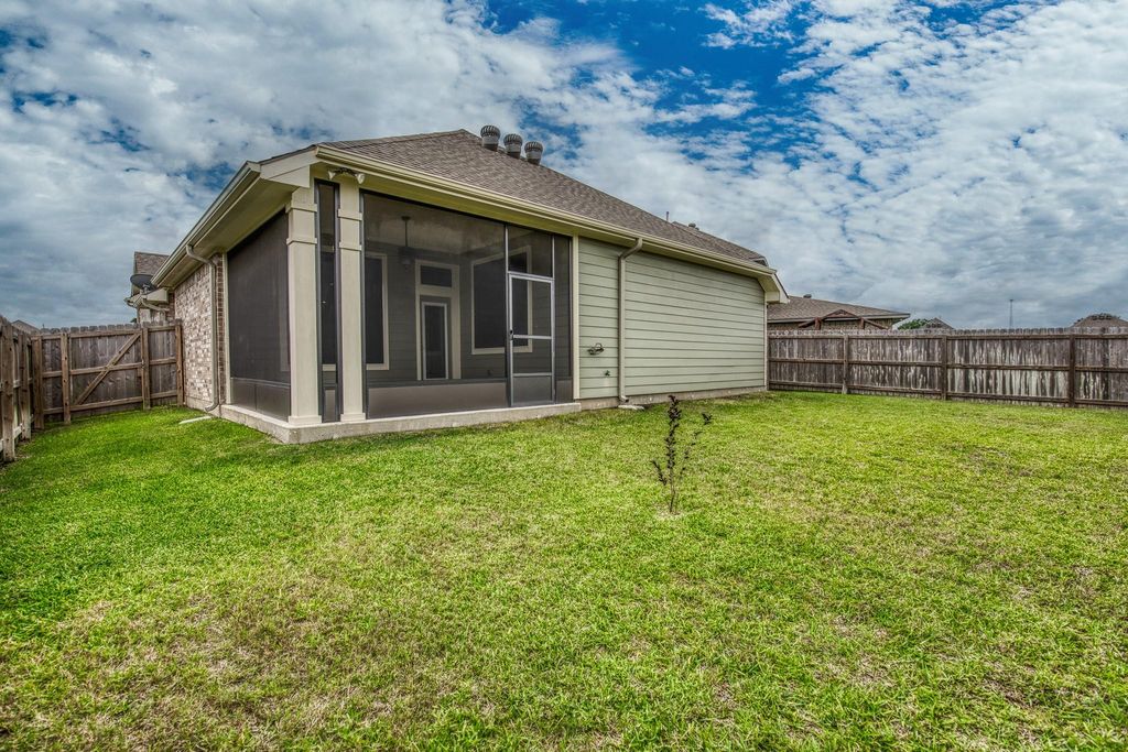Welcome to 2002 Vineyard Pass in The Estates at Vintage Farms, featuring one of Stylecraft’s most popular floor plans—designed for simple, functional living. The open main area is filled with natural light and flows seamlessly into the kitchen and dining space, ideal for everyday life and entertaining. The kitchen offers a large granite island, stainless steel appliances, and a clean tile backsplash. A front flex room with tall windows works perfectly as an office, sitting area, or second living space. The private primary suite provides a comfortable retreat. Thoughtful details include flat panel doors, integral blinds, a screened back porch, and clean, modern finishes. Refrigerator, washer, and dryer are included. Well maintained throughout, the home also features a fully fenced backyard. Located in a growing Brenham community, this newer home offers a floor plan buyers love. Square footage provided by owner, to be verified by buyer.
