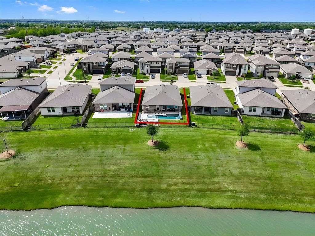 WATERFRONT WITH STUNNING VIEWS AND SPARKLING POOL!!! RARE FIND!! This 4 bedroom home offers top of the line features throughout including dual pane windows, raised panel doors, beautiful chef Inspired kitchen with quartz counters, stainless steel appliances, island with breakfast bar, and added custom storage. The Primary Suite offers a walk in closet with a spacious bathroom featuring dual sinks and large tub & walk in shower. This home also features Smart Home technology, large utility room, backyard mosquito system & extended patio allowing extra room for entertaining or enjoying the beautiful outdoor space. Great open concept floorpan with all the extras! Beautiful flooring, fresh paint colors, plantation shutters & more. Absolutely gorgeous backyard features modern pool with large tanning ledge & water features, large patio areas for entertaining & large green space! Come see this beauty before it's gone!