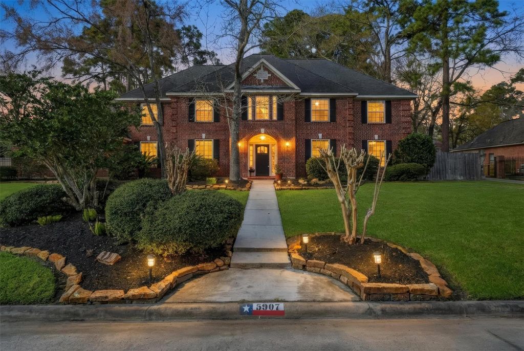 Nestled on a private, wooded cul-de-sac lot just under 1/2 acre in Kings Point Cove, this two-story home offers 4-bedrooms, 3.5-baths, & a 3.5 car attached garage. Incredible living awaits inside, the home features over 4,000 SF with high ceilings, double-pane windows, & a great floor plan. The island kitchen is large with SSTL appliances, plenty of cabinet space & underlit cabinets. The living room features a vaulted ceiling & is anchored by a fireplace & flanked by large windows. Additional highlights include formal living and dining rooms, a private office with custom built-ins, & an oversized laundry room! The spacious owners retreat, located downstairs, is a dream with spa like updated ensuite bath. Upstairs offers a Texas basement for additional storage, a game room, 3 oversized bedrooms with walk-in closets, and two Jack & Jill baths. Outside, enjoy a beautiful sparkling pool, relaxing spa, & a spacious covered patio perfect for entertaining and lots of green space.