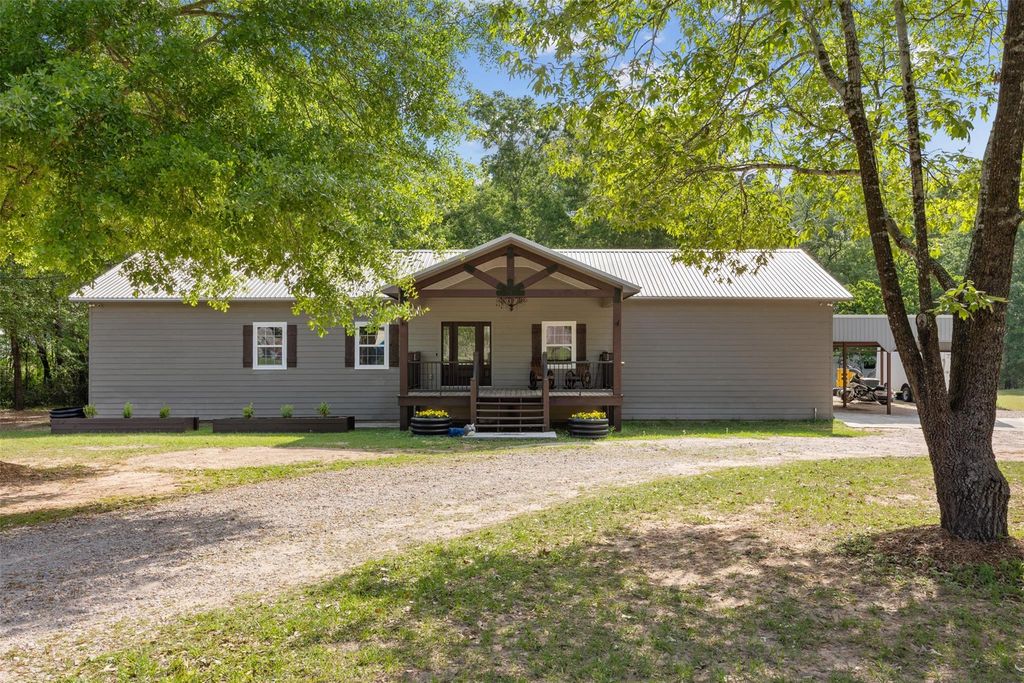 Charming, fully renovated ranch-style home nestled on nearly 2.5 wooded unrestricted acres in the highly sought-after Magnolia area. This inviting property blends modern updates with peaceful country living, featuring unique lighting fixtures throughout that add character and warmth. The kitchen is equipped with stainless steel appliances, and the washer, dryer, and refrigerator are all included for added convenience. Step outside to enjoy a huge covered patio, perfect for relaxing or entertaining, overlooking the serene, tree-filled lot. Additional highlights include a versatile carport/workshop, offering plenty of space for projects, storage, or hobbies. A rare find with space, style, and comfort all in one