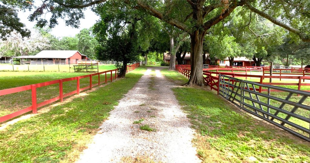 Hardin Store 7-Charming Equestrian Retreat on 7.42 Unrestricted Acres! This well maintained 7.42-acre property is perfect for horses, cattle or show animals. Nestled among majestic mature oaks and thoughtfully maintained, this estate features an updated 3-bedroom, 2-bathroom main home and a delightful 2-bedroom, 1-bathroom guest house that can also serve as a lucrative rental opportunity. You will find easy access with circle drive and 2 electric gates, RV/ trailer parking, 3 car attached garage and 2 car-carport. The front pasture has a 2-stall barn with tack/feed room, round pen and lights. The big barn has 2/3 stalls, tack/feed room a hay loft and 2 huge storage areas perfect for additional stalls or workshop. Both homes have public water and there is a separate water well for the barns and outside use. Conveniently located less than a mile from the 249, you have easy access to city amenities while enjoying the tranquility of country living.