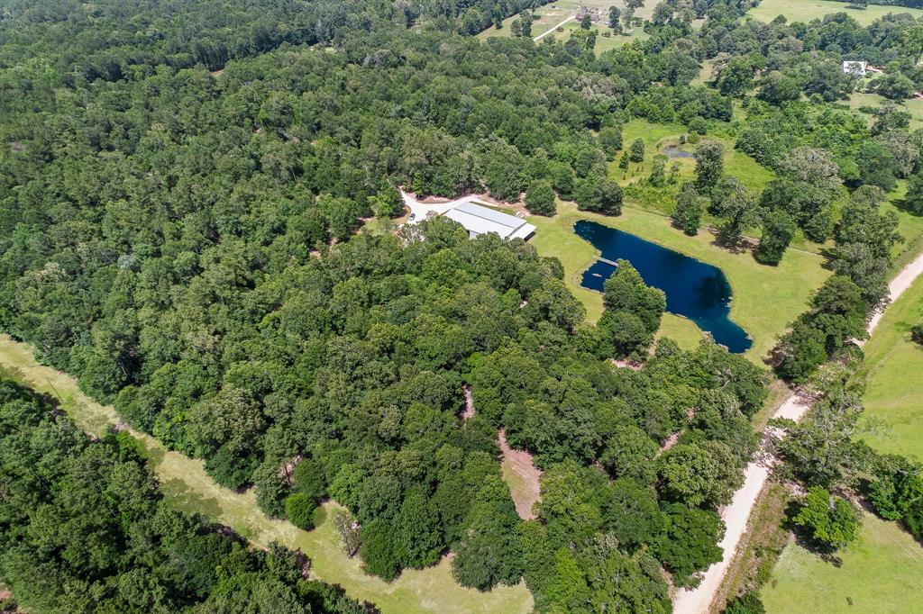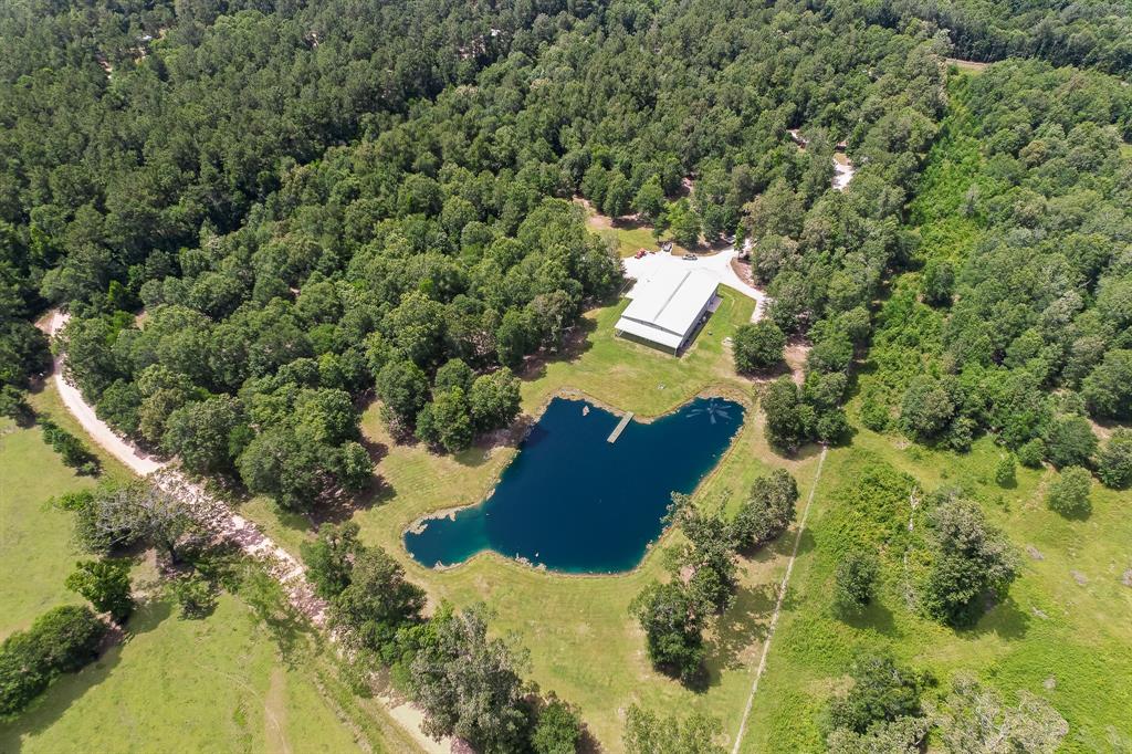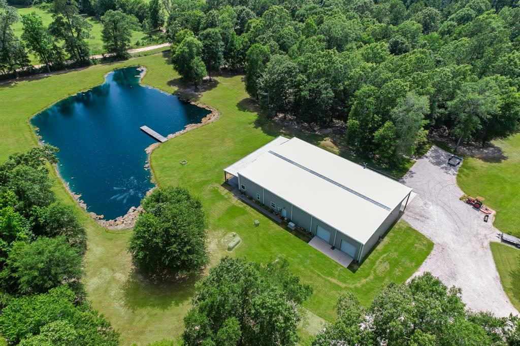 Retirement life with a place for family or guests to stay. Close but also private, with two (2) homes on one large, beautiful piece of land. Featuring a 6600SF fully insulated Barndominium on its SE corner, with a huge porch overlooking a 1.25 acre stocked pond + 2nd house /1200SF on its NW corner with its own gated private entrance. Each having two large bedrooms! A super convenient 10 min drive away, sits the banks of the Trinity River. A scenic 20-minute drive South of Livingston & about 40 miles North of Baytown/Beaumont, you'll find this beautifully wooded, (20-acre) retreat! Larger home 2700SF, walk-in closets & 2 full baths. Primary Bath offers Jacuzzi spa w/custom built-in wine rack, accent mood lighting of spa, heated floors & his/her vanities! Built-in entertainment center, wet bar w/ full sized fridge in the media room with theatre seating. HIGH-END solid wood custom kitchen cabinetry made & shipped by Amish craftsman, tailor fit this kitchen. 20KWh Gen & 500 Galon LPG tank!