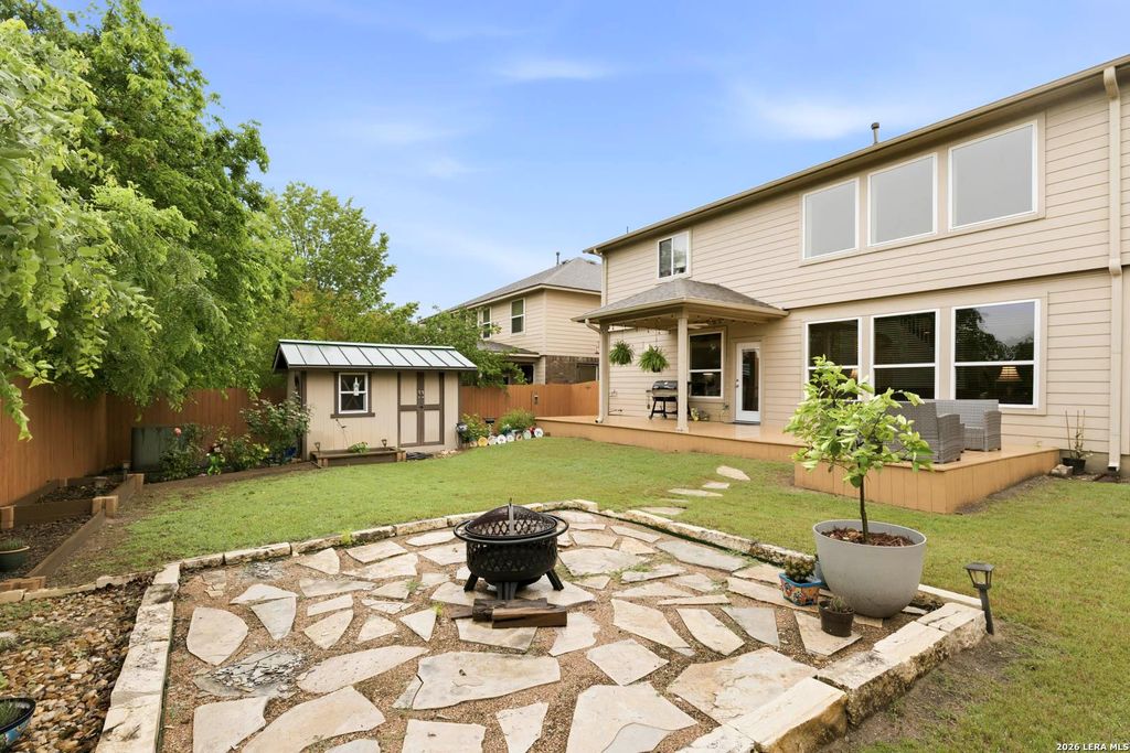 Welcome to this beautifully maintained two-story home in the highly sought-after gated community of Westwinds East at Alamo Ranch. Ideally positioned with open space behind the home, this property offers a quiet, low-traffic setting that stands out from typical neighborhood lots. Inside, you'll find a spacious and functional layout with soaring 18ft ceilings and an open-concept design that's perfect for both everyday living and entertaining. The main level features a large living area, formal dining space, and a versatile study that can easily serve as a home office or optional fifth bedroom. The kitchen is thoughtfully designed with granite countertops, ample cabinetry, and a comfortable breakfast area. Upstairs, all bedrooms are well-appointed, including a generous primary suite with a walk-in closet, double vanity, and walk-in shower. Secondary bedrooms offer flexibility for family, guests, or additional workspace. The backyard provides a sense of openness and separation rarely foun