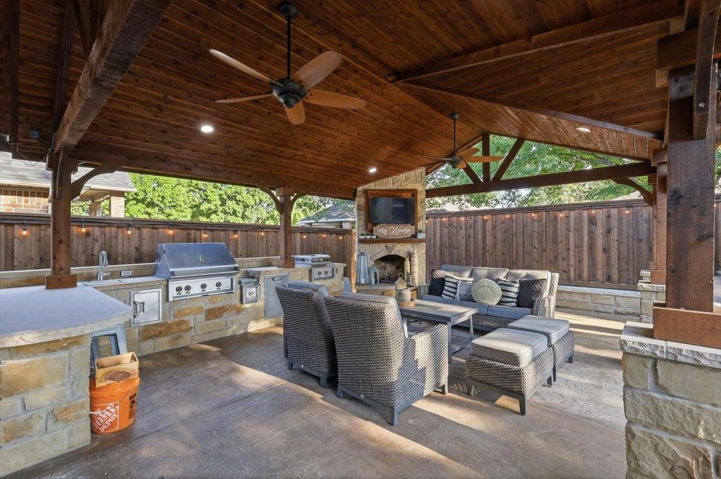 Step outside to your own backyard oasis, complete with a fully equipped outdoor kitchen, ambient lighting, and a pool featuring customizable color-changing interior lighting.