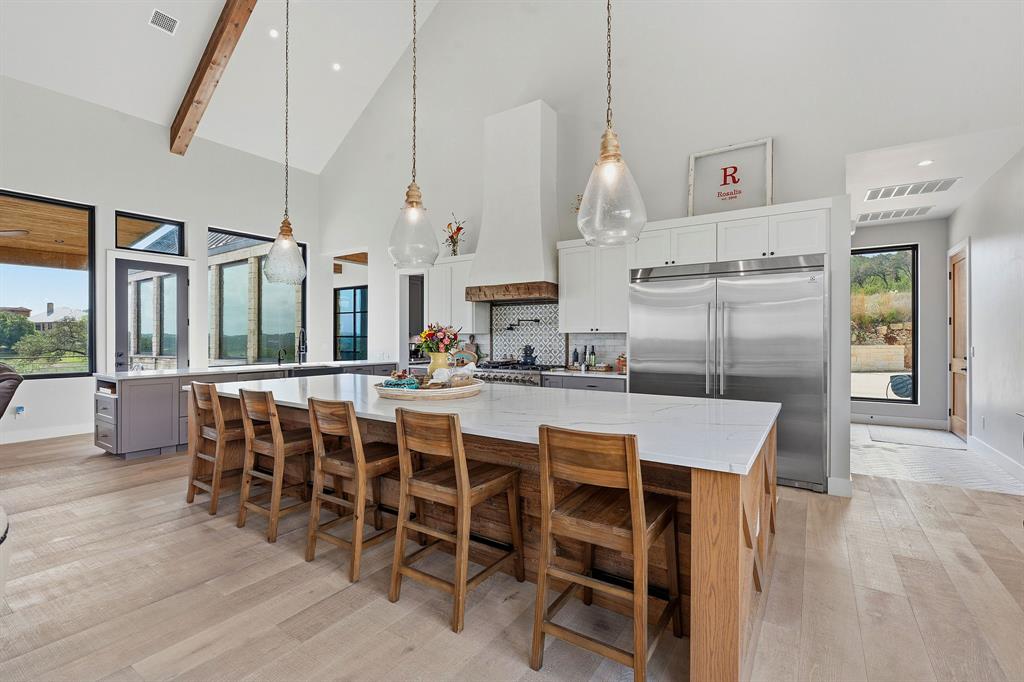 Exquisite custom estate on Canyon Lake, where elevated design meets effortless luxury. This 4-bedroom, 4.5-bath masterpiece showcases impeccable craftsmanship, expansive living spaces, and refined finishes throughout. A private office and fully equipped gym offer both productivity and wellness without ever leaving home.At the heart of the residence, the gourmet kitchen is a chef’s dream—designed for both intimate gatherings and grand-scale entertaining. Walls of windows frame breathtaking lake views and flood the home with natural light, seamlessly blending indoor and outdoor living. Step outside to a true resort-caliber retreat featuring an oversized pool and multiple expansive patios—perfect for sunset dining or relaxed poolside lounging. The primary suite is a sanctuary of its own, opening to a private upstairs terrace with sweeping views of Canyon Lake. For those who value both luxury and functionality, the property offers a 3-car garage plus an impressive RV/boat garage complete with full hookups—ideal for lake life and beyond. A rare opportunity to own a one-of-a-kind waterfront escape where every detail has been thoughtfully curated for an exceptional living experience.
