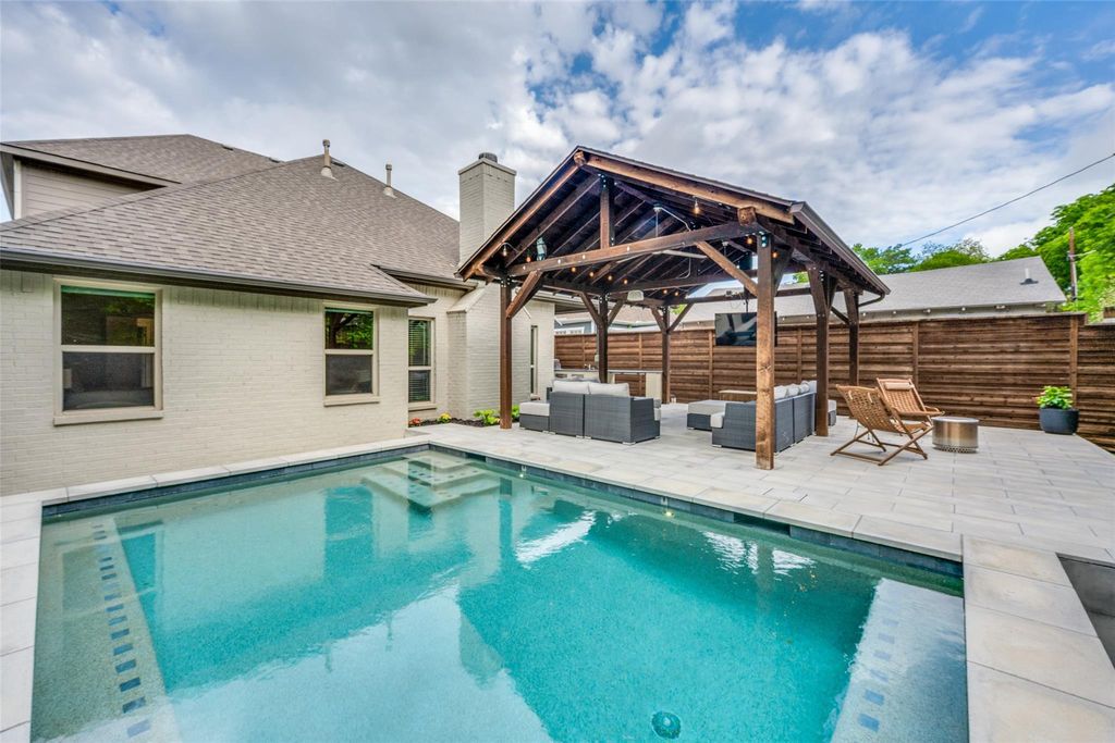 Get ready for sumptuous outdoor living! This fabulous outdoor oasis offers privacy and expansive space for year-round enjoyment. Oversized Firerock concrete pavers take you from the seamless indoor to outdoor living area featuring a fantastic grill space with lots of granite counter area for serving Texas cuisine! The 24' x 17' vaulted pergola is a gorgeous build with lights and mounted patio TV, all surrounded by a custom high privacy fence and grass for pet space. This leads to the sparkling salt water pool installed in 2022 complete with lighting features, app-controlled and heated. This backyard is a showstopper and you will not want to leave. Inside features an open-concept floor plan with downstairs primary en-suite, a large office, ample cabinet space in the kitchen, surrounded by custom granite, farm sink, designer vent and corner walk-in pantry. Wood floors, soaring entryway, whole house water filtration system and smart features are a few of the many reasons to own this home. The spacious layout includes a versatile upstairs game room or family area, along with 3 bedrooms and a full bath. One of the bedrooms is currently set up for a gym space. Located in the prime Cultural District and walking distance to Dickies Arena, the Bricks of Camp Bowie, world-class museums, dining, shopping, and all the vibrant energy Fort Worth has to offer, while enjoying the charm and convenience of an established neighborhood. This 2015 home blends modern finishes with exceptional outdoor amenities, making it a rare find for those seeking both style and livability in 76107. Perfect for privacy, entertaining or anyone who loves to live life alfresco!
