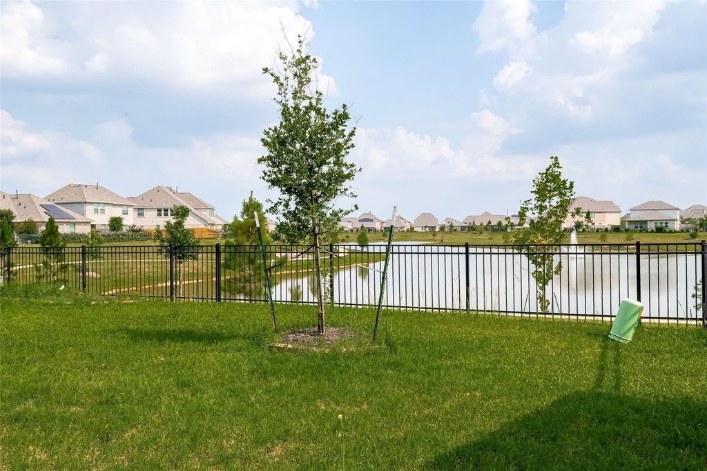 Welcome to 24303 Wild Bramble Lane, Katy, TX 77493! A beautifully designed waterfront home in Katy Pointe built in 2022 by K. Hovnanian. This 1-story, 3-bedroom, 2-bath home (approx. 1,390–1,515 sqft) features an open-concept layout with a spacious family room, crown molding, and abundant natural light. The modern kitchen offers granite countertops, maple cabinetry, gas range, and a seamless flow for entertaining. The private primary suite includes double sinks, walk-in closet, and a spa-style shower. Enjoy breathtaking lakefront views with a fountain backdrop from your covered patio—perfect for outdoor living. Energy-efficient features, central HVAC, and move-in ready condition add value. Located near Westpark Tollway & Katy Freeway with easy access to Houston’s Energy Corridor, plus resort-style amenities including pool, trails, and playground. Zoned to highly acclaimed Katy ISD. Ideal for homeowners or investors seeking a waterfront home in Katy TX.