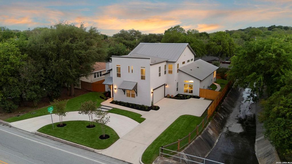 OPEN HOUSE SATURDAY, APRIL 25TH FROM 1-4PM. Crafted as a private urban retreat, this exceptional residence offers a refined blend of sleek modern architecture and effortlessly elegant living in the coveted enclave of Terrell Hills. Clean lines, curated finishes, and a light-filled interior create a sophisticated aesthetic aligned with today's most discerning tastes. Spanning nearly 4,000 square feet, the home is thoughtfully designed to balance grand, open concept living with intimate spaces for quiet retreat. A welcoming front reception lounge, anchored by a soft, ambient fireplace, sets the tone for both relaxed evenings and elevated entertaining. At the heart of the home, a dramatic two-story great room seamlessly unites the kitchen and living spaces, where soaring ceilings and walls of natural light create an airy, expansive atmosphere. The well-appointed kitchen serves as both a functional workspace and a central gathering point-perfectly suited for hosting, where conversatio