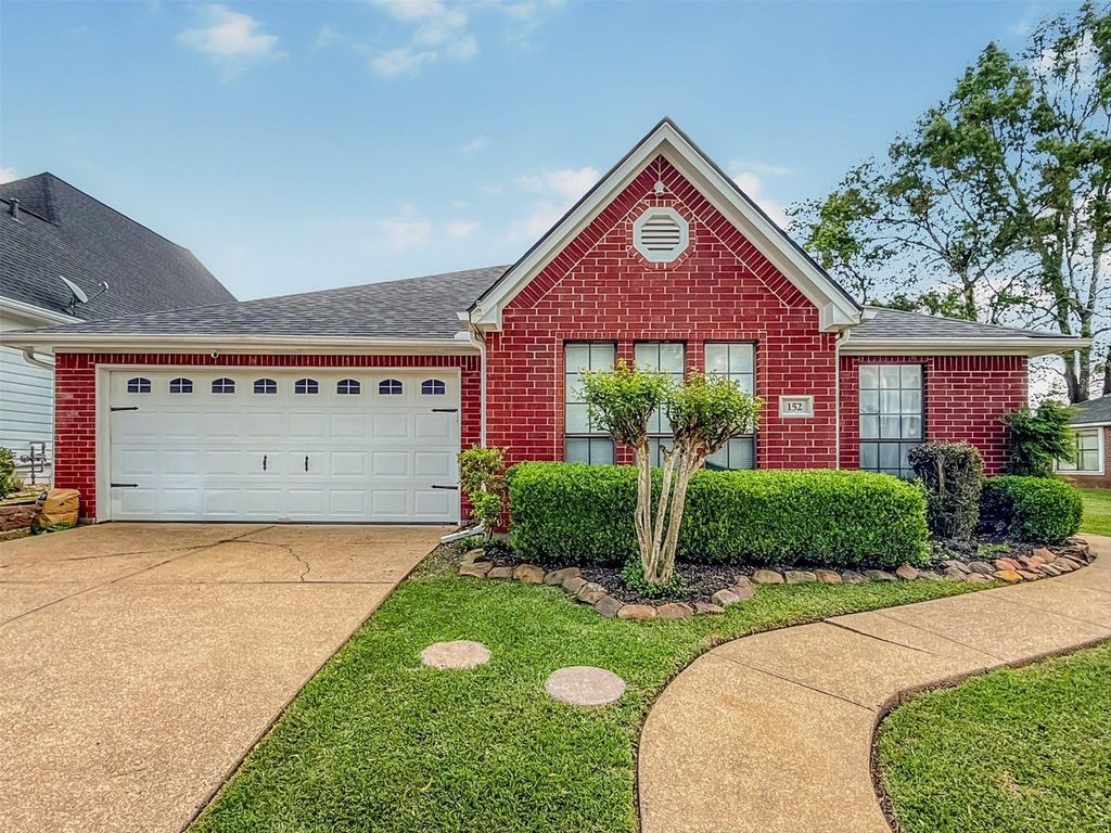 Welcome to 152 Waters Edge @ 18th in Elkins Lake! This golf course patio home is ideally located on the 9th fairway of the Lake Course. Beautifully updated and move-in ready, it features marble countertops throughout and a bright, open-concept design connecting the kitchen, dining, and living areas-perfect for everyday living and entertaining. Enjoy a cohesive, neutral palette with updated flooring for a clean, high-end look. Smart home features include voice-controlled lighting, motorized blinds, smart garage access, and a whole-home generator for peace of mind. The light-filled interior feels airy and inviting, while the private, low-maintenance patio offers relaxing water and golf course views. A green space area beside the home adds extra privacy and openness. Located in a desirable community with lakes and amenities, this home offers an exceptional lifestyle.