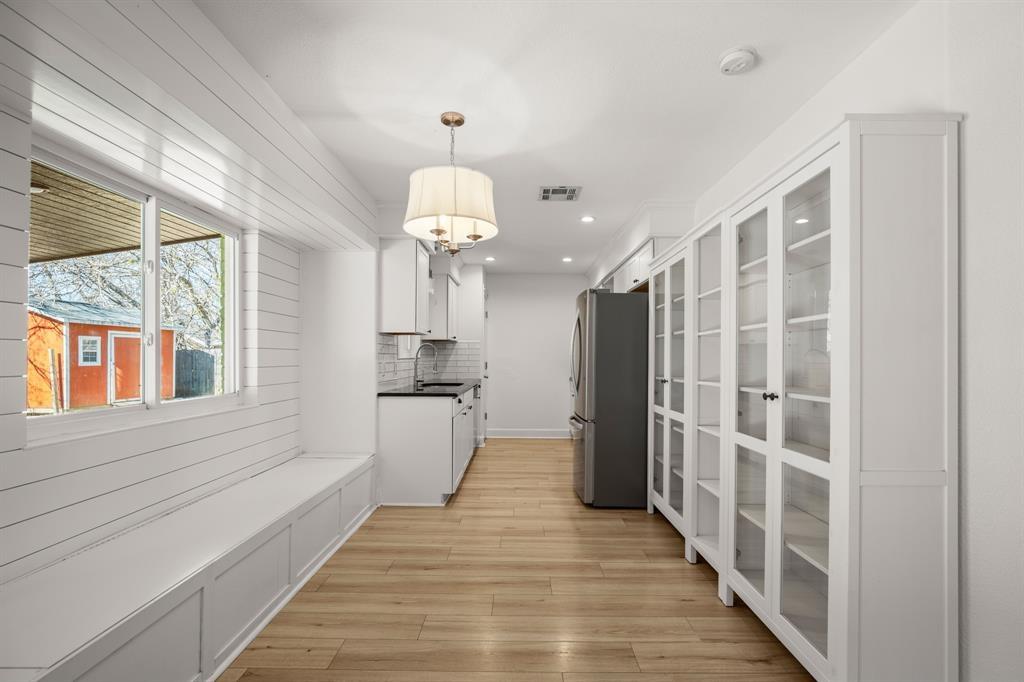 Main Floor; GranCnt, Dining Area, Open to Family Room, Pantry, Recessed Lighting, Storage; Remodeled Kitchen with stainless steel appliances. Come enjoy the built in breakfast nook overlooking the spacious backyard!